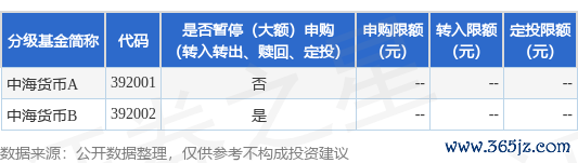 本站消息浙商配资,4月22日中海基金管理有限公司发布《中海货币市场证券投资基金B类基金份额暂停代销机构申购(含转换转入、定期定额投资)业务公告》。公告中提示,为维护现有基金份额持有人的利益,保证基金的平稳运行,自2025年4月24日起中海货币市场证券投资基金B类基金份额暂停代销机构申购(含转换转入、定期定额投资)业务,下属分级基金调整明细如下: