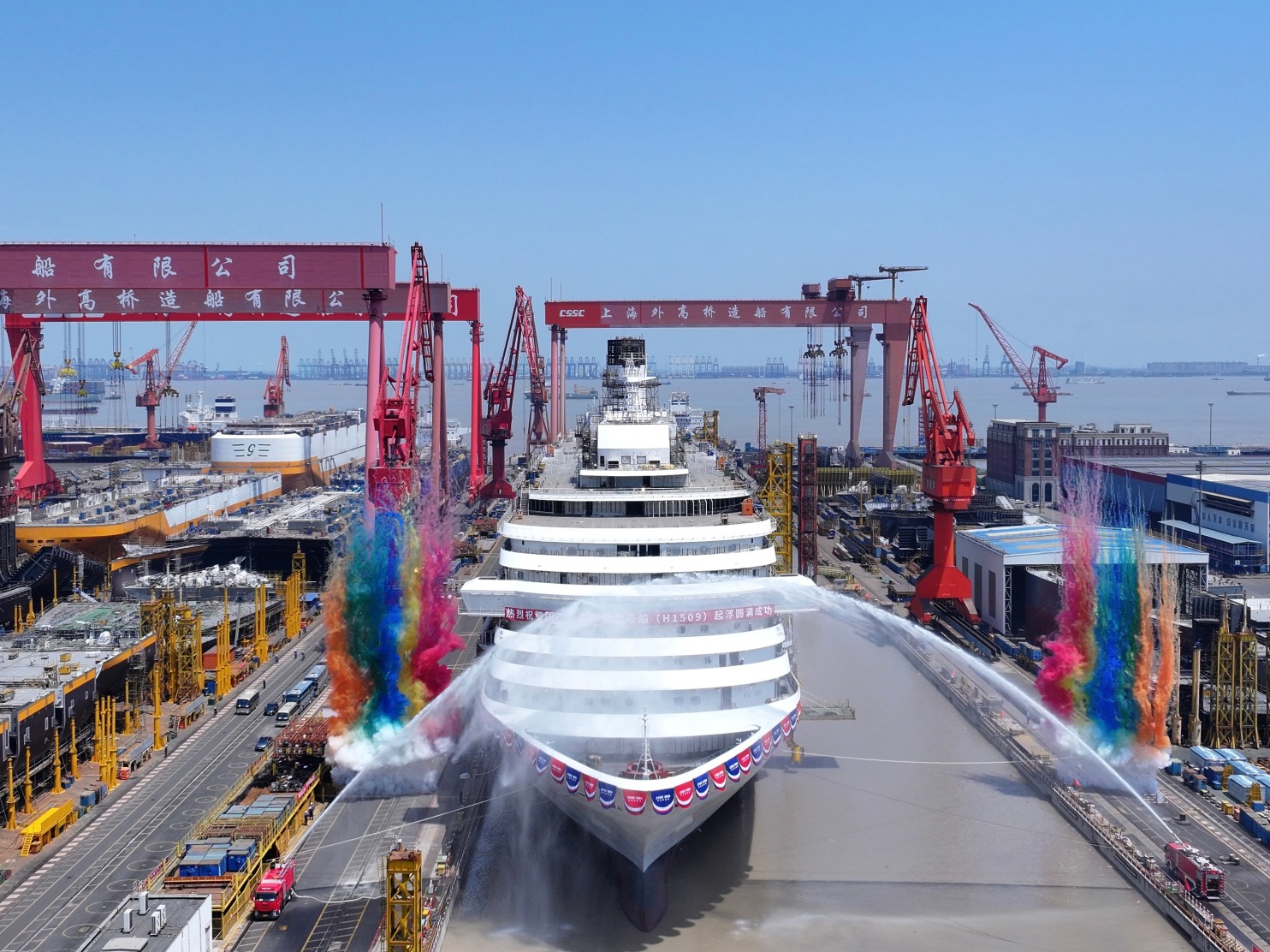 上证报中国证券网讯(记者王文嫣)4月28日11时18分许,彩色礼花绽放盒马配资,随着嘉宾一起推动推杆,两股巨大水柱在船头上方交会形成水拱门……第二艘国产大型邮轮“爱达· 花城号”(H1509)在中国船舶集团有限公司(下称“中船集团”)旗下上海外高桥造船有限公司(下称“外高桥造船”)顺利实现坞内起浮的里程碑节点。